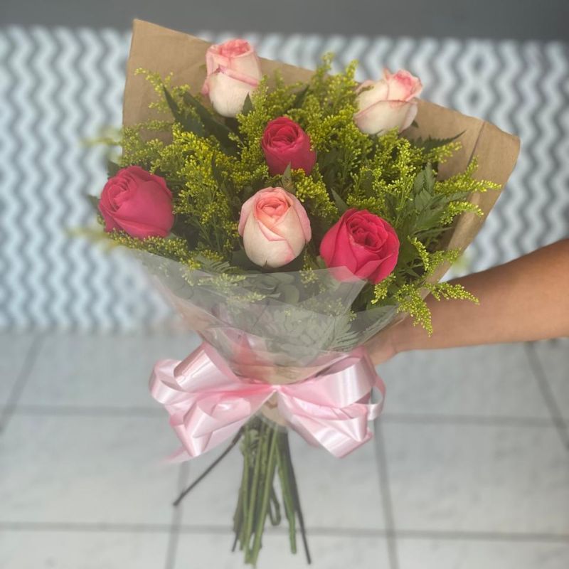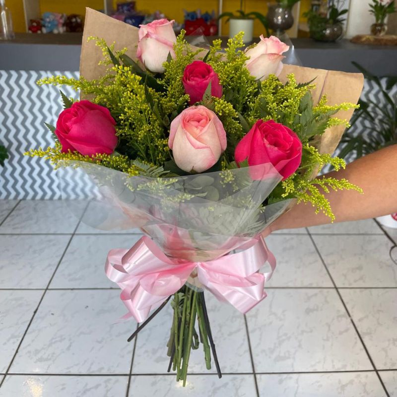 Com 6 rosas cor de rosa